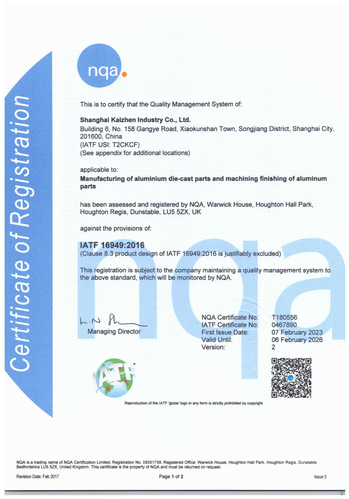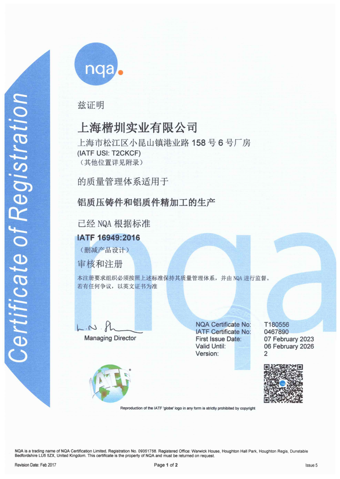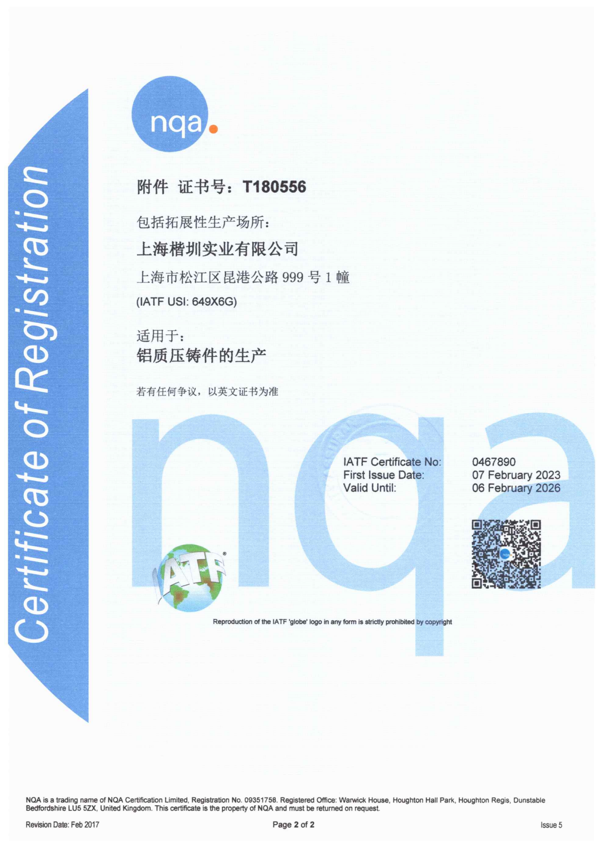 2023年7月,我司荣获IATF16949质量体系认证